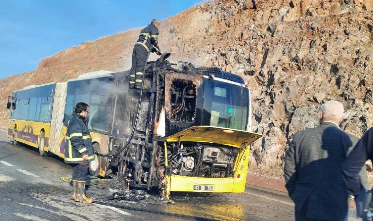 Alevler kısa sürede büyüyüp, otobüsü sardı. Alev topuna dönen otobüs, ihbarla gelen itfaiye ekiplerinin müdahalesiyle söndürüldü.