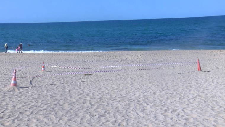 Ekipler, olay yerindeki incelemeler sırasında halk plajına girişleri kapattı. Patlayıcı madde uzmanları tarafından yapılan ilk incelemelerde, havan mermisinin 107 milimetre çapında olduğu belirlendi.