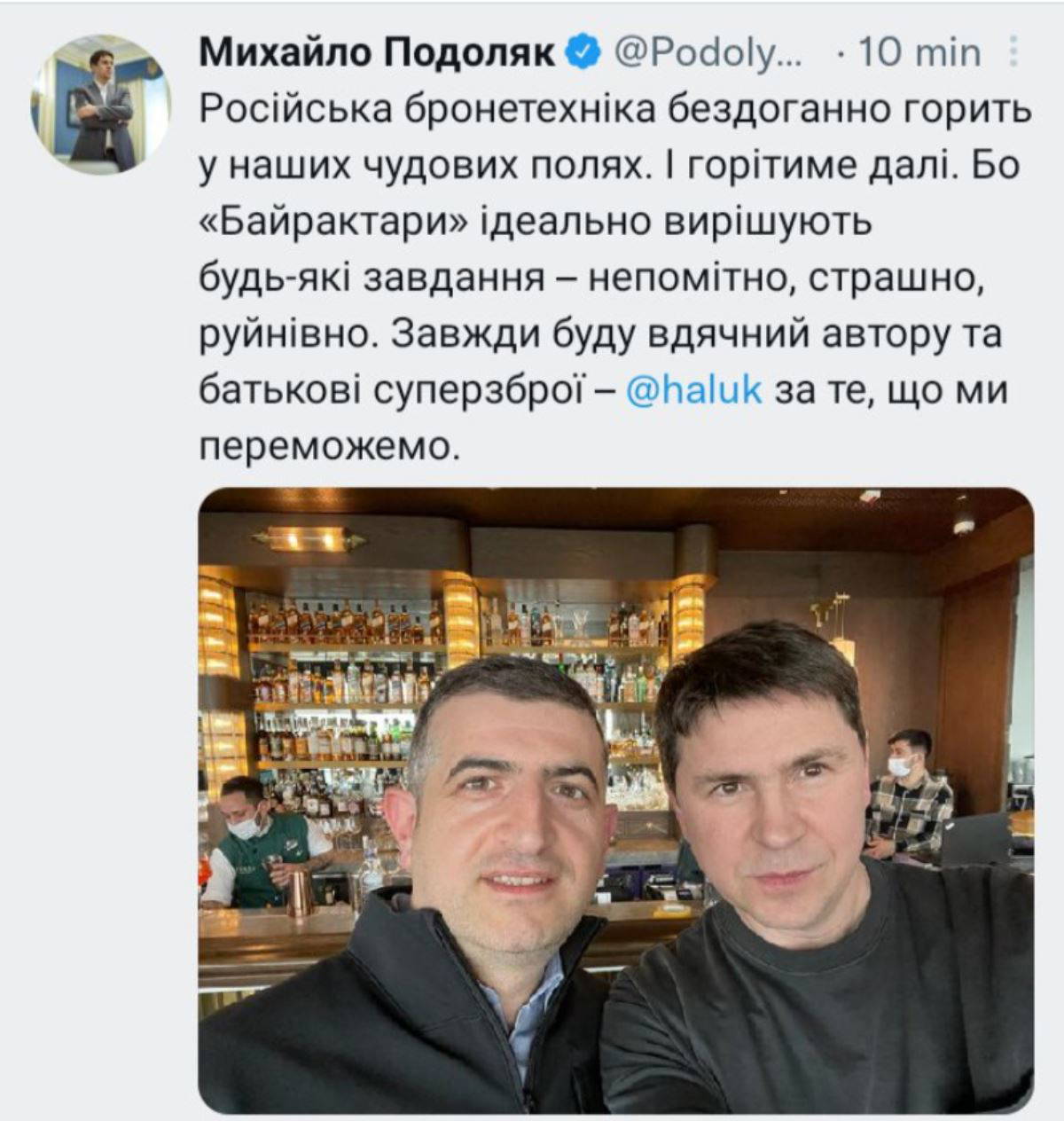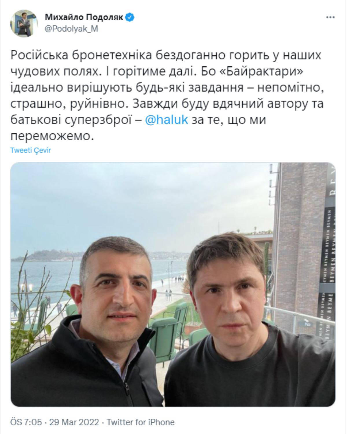 Zirvede Ukrayna heyetinde yer alan Ukrayna Devlet Başkanlığı Ofisi Danışmanı Mihail Podolyak'ın Twitter hesabından paylaşıp daha sonra sildiği paylaşım ise sosyal medyada gündem oldu. Podolyak önce, BAYKAR Savunma Genel Müdürü Haluk Bayraktar'la içkili bir mekanda olan fotoğrafını paylaştı.