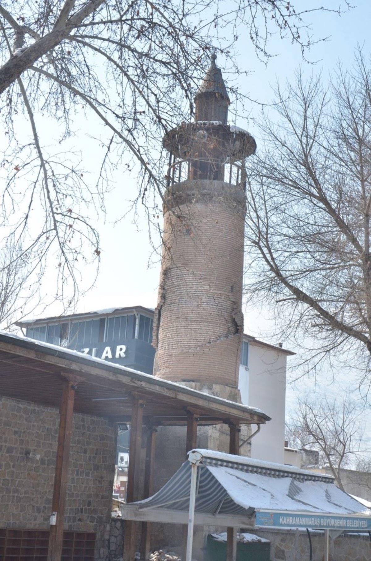 Dulkadiroğlu Beyliği döneminde Alaüddevle Bey tarafından 1490 yılında yapıldığı bilinen Çarşı Atik Camisi’nin minaresinin tuğlaları, 6 Şubat’taki depremle döküldü.