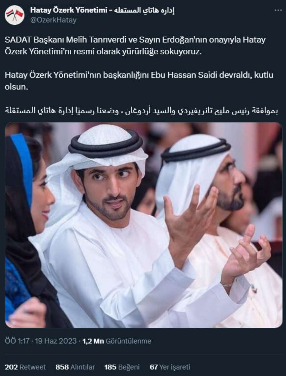 Depremde büyük yıkım yaşayan ve yaralarını sarmaya çalışan Hatay’da sorun bitmiyor. Haziran ayında açılan “Hatay Özerk Yönetimi” adlı Twitter sayfasından yapılan paylaşımda “Suriye halkımız nüfusun yüzde 90'ını oluşturduğu için özerk bir yönetime ihtiyaç duyduk ve halkımıza hizmet edeceğiz, Suriye bayrağımızı dalgalandıracağız” denildi.