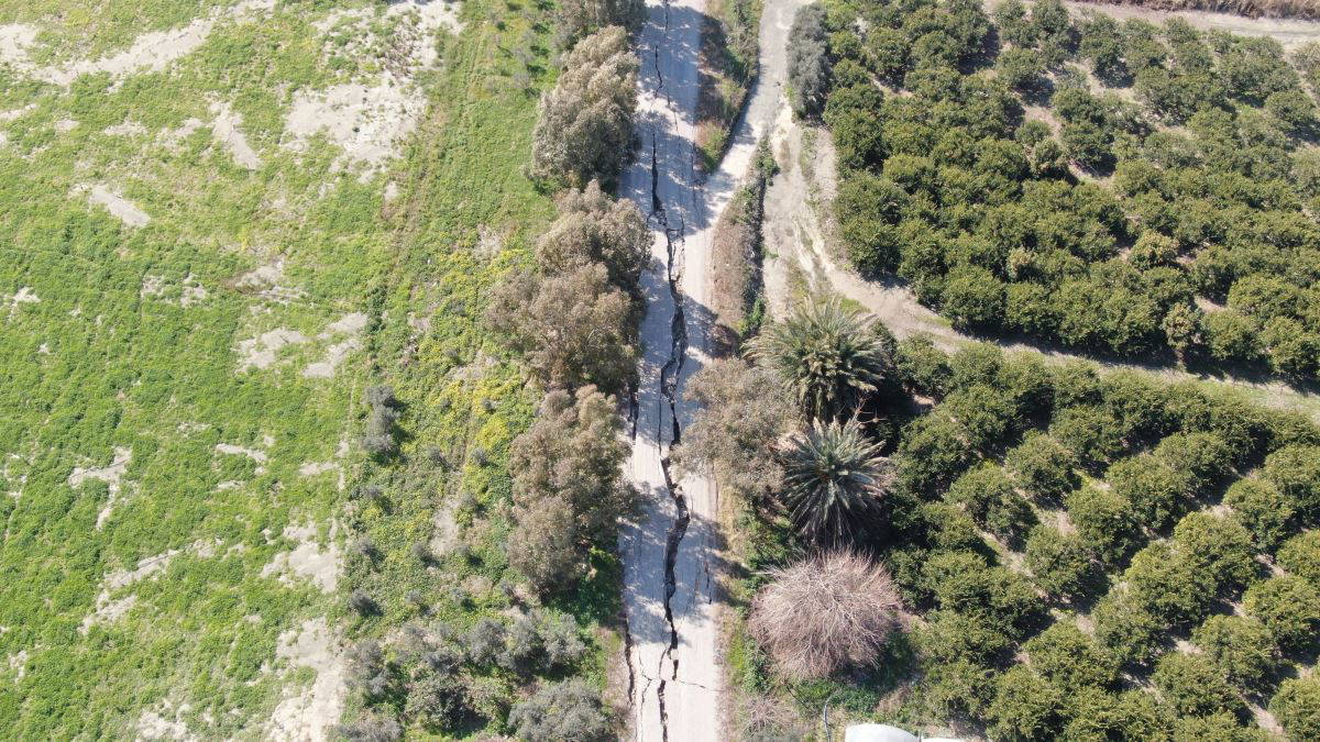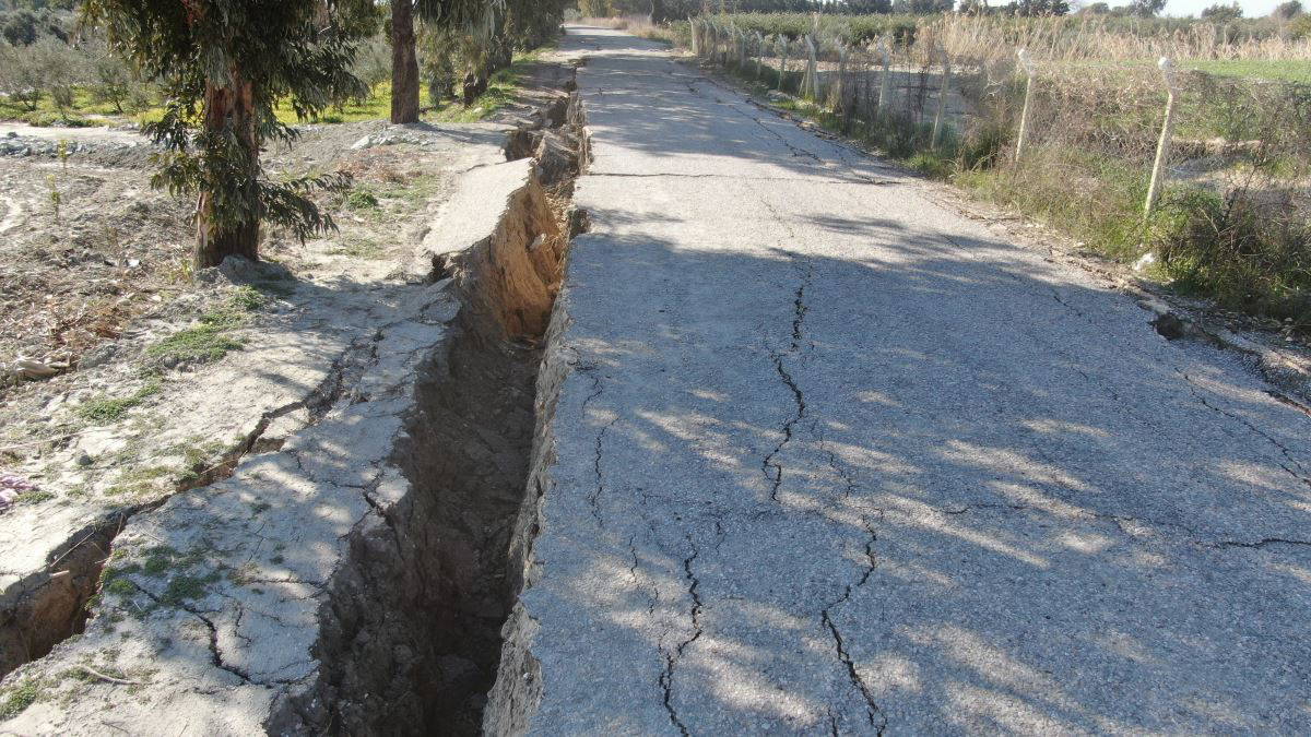 Samandağ ilçesine bağlı Yeni Mahallesi Liman Caddesi'nde bulunan ve Asi Nehri'nin denizle birleştiği noktaya giden yaklaşık 3 kilometrelik yolda derin yarıklar ve çökmeler oluştu.