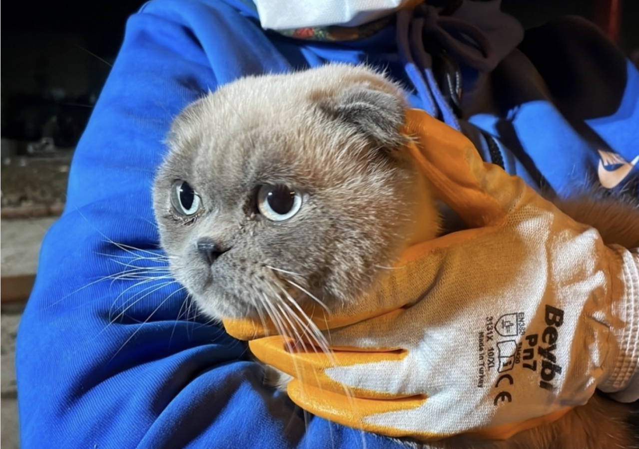 Gönüllü olarak kısa süre önce Konya'dan gelen 30 yaşındaki Mehmet Köroğlu, 00.50 sıralarında Scottish Fold cinsi kediyi enkazdan çıkardı.
