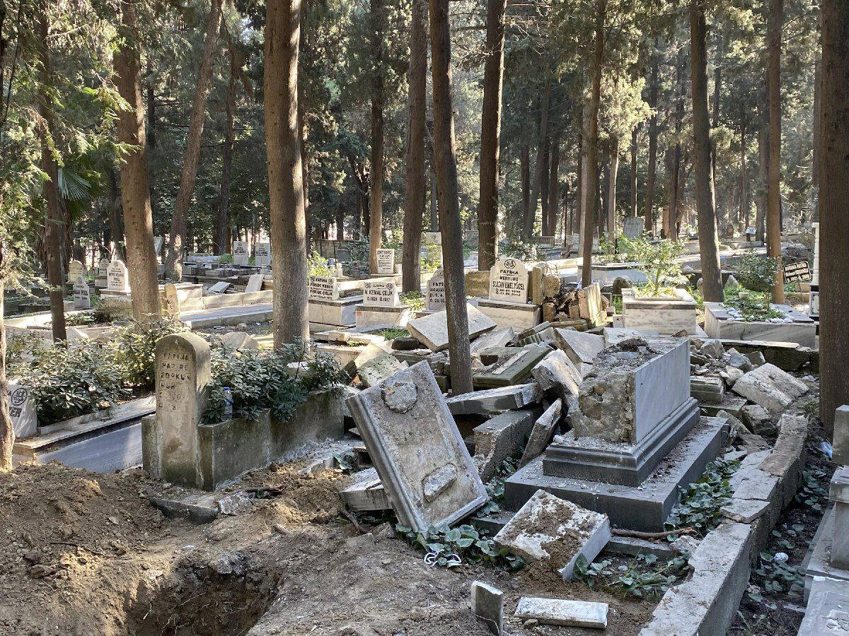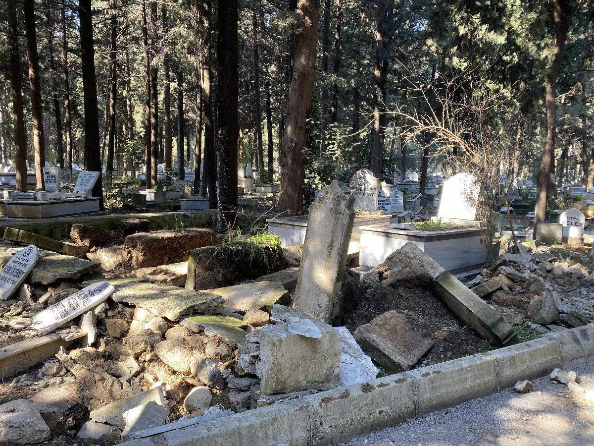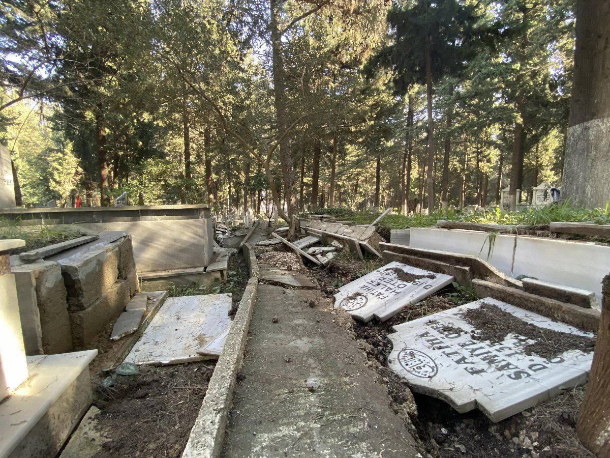 Bazı mezarlarda çökme meydana gelirken, bazı mezarların mermer bölümleri ve mezar taşları kırıldı.