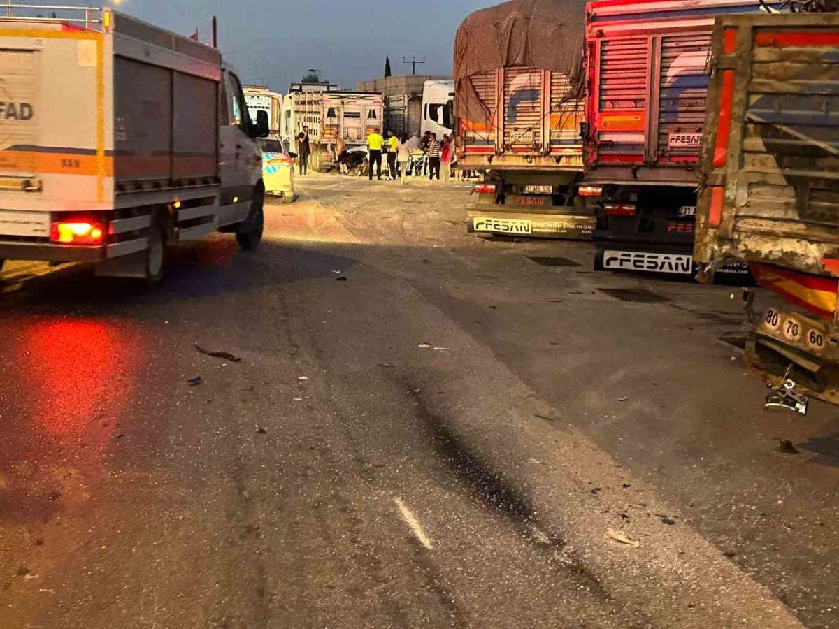 Hatay'ın Antakya ilçesinde çevreyolu Serinyol Mahallesi mevkiinde bir kaza meydana geldi. Antakya ilçe merkezine seyir halinde olan 07 BFT 665 plakalı otomobil, önce park halindeki TIR'a çarptı ardından takla attı.