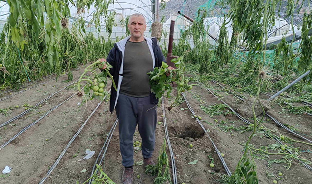 Domates seraları zarar gören çiftçi Sever Kuş, 3 bin metrekarelik alanda kurduğu 9 bin fidelik domates serasının yerle bir olduğunu söyledi. Kuş, seralarda hasarın büyük olduğunu, yetkililerden destek beklediklerini belirtti.