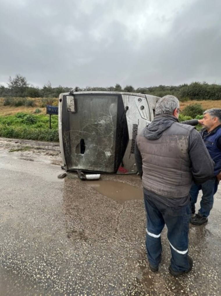 Edinilen bilgiye göre; vardiyadan çıkan işçileri taşıyan 31 PBT 71 plakalı servisin devrildiğini gören yurttaşlar durumu 112 Acil Çağrı Merkezi'ne bildirdi.