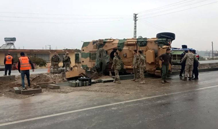 Antakya-Reyhanlı yolu üzerinde 'kirpi' adı verilen askeri zırhlı araç, henüz bilinmeyen nedenle kontrolden çıkarak, orta refüje devrildi.