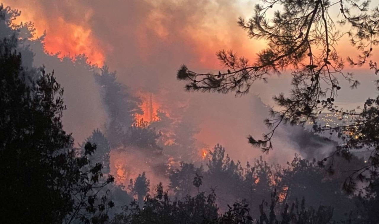 Kınalıtepe mevkiinde yayılmaya devam eden yangına, havadan ve karadan müdahale edilirken, bölgede yaşayan bin 500 kişi tahliye edildi.