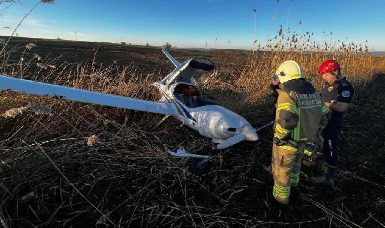 Bursa’nın Yenişehir ilçesine bağlı Çiçeközü köyü Sırt mevkiinde saat 16.30 sıralarında bir eğitim uçağı tarlaya mecburi iniş yaptı.