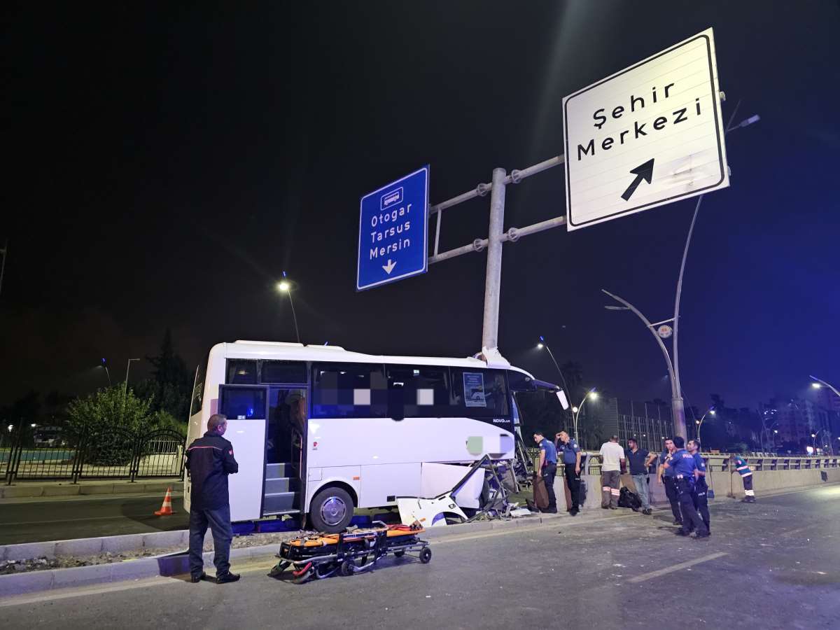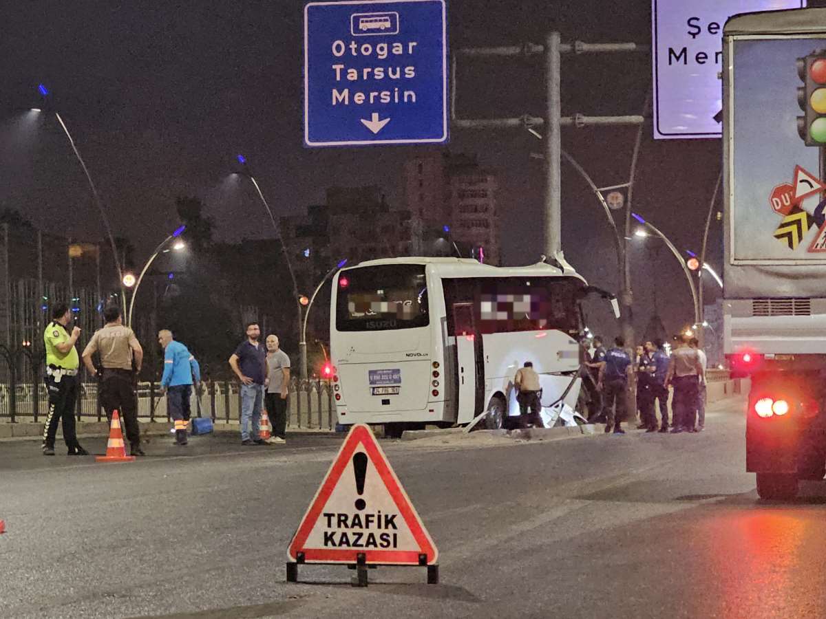 Merkez Seyhan ilçesi Reşatbey Mahallesi Turhan Cemal Beriker Bulvarı'nda, saat 03.00 sıralarında İskenderun'dan Adana Havalimanı'na yolcu taşıyan Doğan Ö. yönetimindeki 34 FBG 169 plakalı midibüs, bilinmeyen nedenle kontrolden çıkıp, yön levhası direğine çarptı.