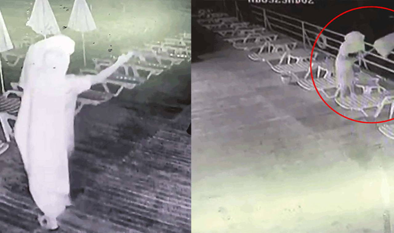 Antalya'da mavi bayraklı plajı Konserve Koyu Halk Plajı'na kimliği belirsiz bir kişi gece saatlerinde zarar verdi. Plajın ahşap platformu üzerinde beyaz bir havluyla yüzünü gizleyen kişi, güvenlik kamerası önünde uzun süre dans etti.