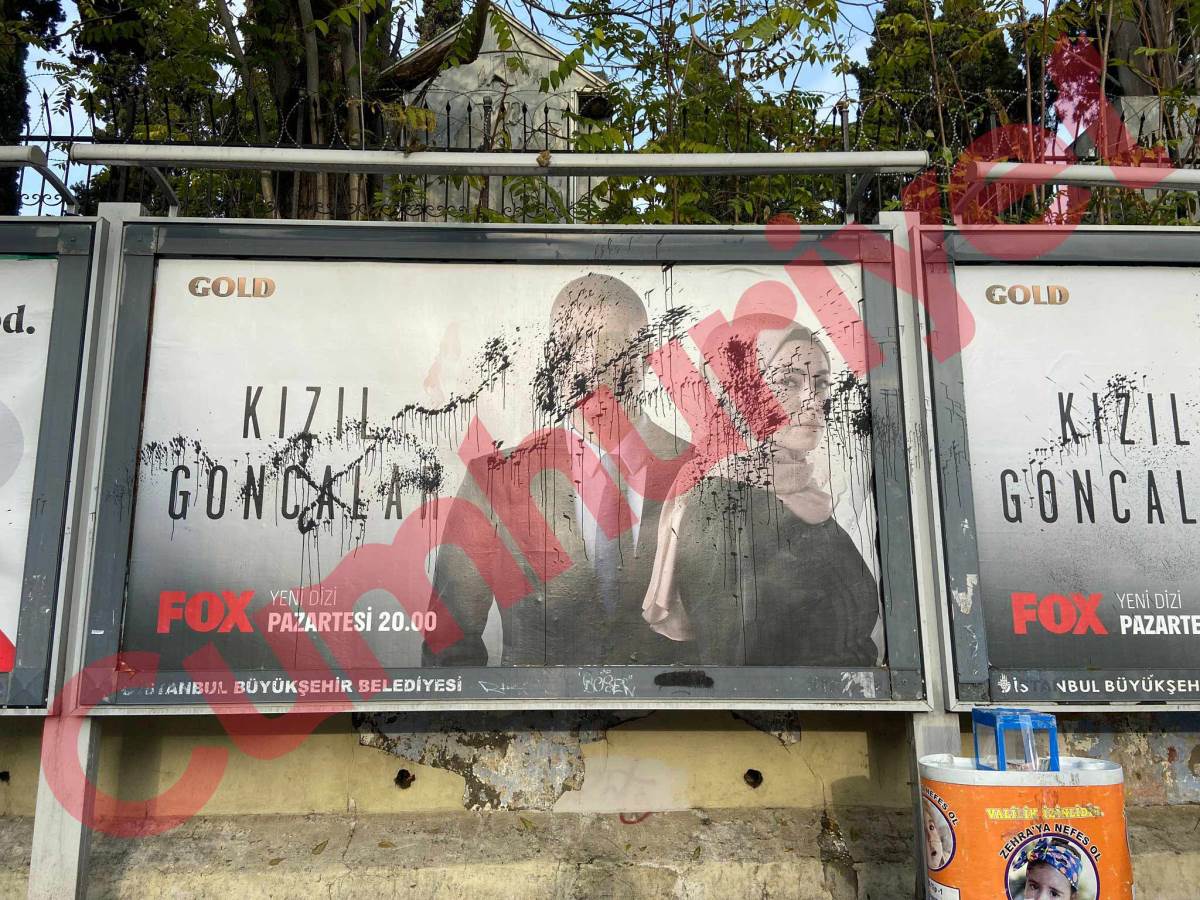Hedef gösterilen dizinin afişine Şişli'de sprey boya ile kimliği belirsiz kişiler tarafından saldırı düzenlendi.