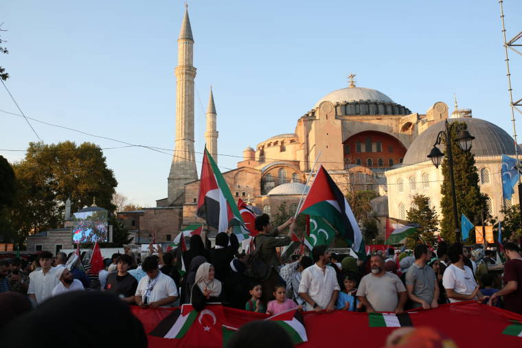 Haniyye'nin kısa zaman önce yaptığı Filistin halkına destek çağrısı üzerine bugün saat 18.30'da İstanbul'da Ayasofya Meydanı’nda gerçekleştirilecek Filistin’e destek mitingi için binlerce kişi bir araya geldi.
