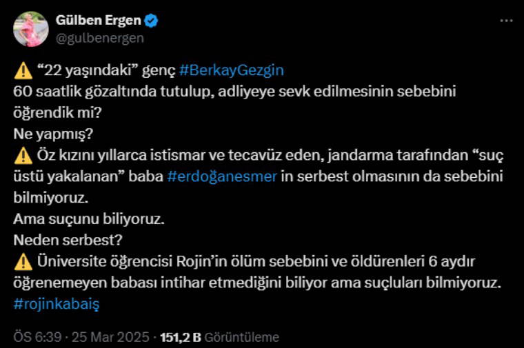 Gezgin’in tutuklanmasının ardından birçok ünlü isim sosyal medyada tepkilerini dile getirdi. Kararın hukuksuz olduğunu savunan kullanıcılar, Berkay Gezgin’in serbest bırakılması için çağrıda bulundu. İşte ünlülerin Berkay Gezgin için yaptıkları paylaşımlar...