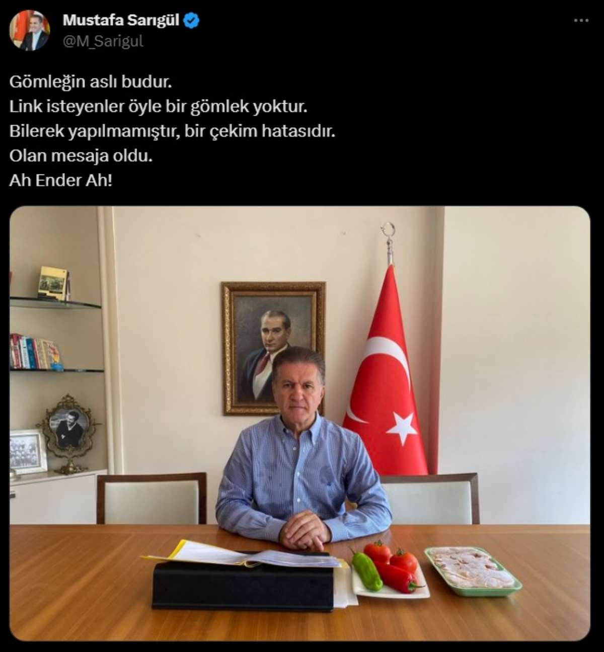 Gömleğin 'aslını' paylaşan Sarıgül, “Gömleğin aslı budur. Link isteyenler öyle bir gömlek