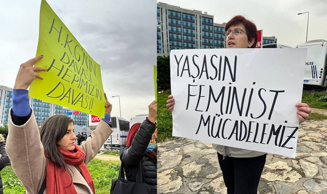 Dava öncesi Sol Feminist Hareket, adliye önünde bir basın açıklaması yaptı.