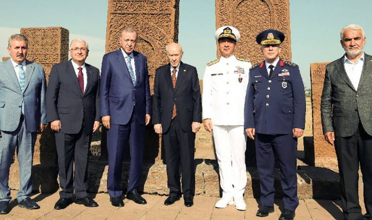 Protokolde HÜDA PAR lideri Zekeriya Yapıcıoğlu ile yan yana olduğu görüldü. Protokolde Bahçeli ve Yapıcıoğlu ellerini birlikte kaldırdı.