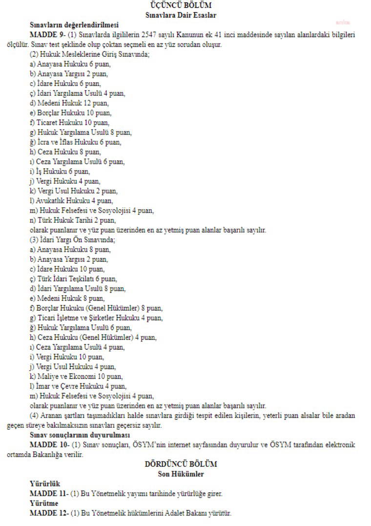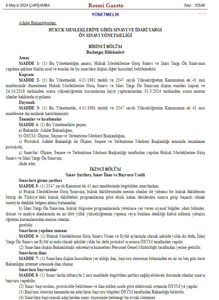 ÖSYM'nin hazırlayacağı Hukuk Melseklerine Giriş ve İdari Yargı Ön Sınavlarının yönetmeliği Resmi Gazete'de yayımlandı.