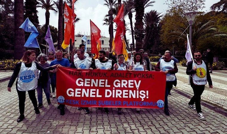 CHP'nin Cumhurbaşkanı adayı ve İstanbul Büyükşehir Belediye Başkanı Ekrem İmamoğlu’nun gözaltına alınarak tutuklanması sonrası gelişen tepki eylemleri ülke genelinde devam ederken Kamu Emekçileri Sendikaları Konfederasyonu (KESK) üyeleri “Genev grev genel direniş” çağrısıyla bir basın açıklaması yaptı. İzmir’de Kültürpark’ın 9 Eylül Kapısı’nda toplanarak İzmir Büyükşehir Belediye Başkanlığı’nda geçen KESK üyeleri burada basın açıklaması yaptı.