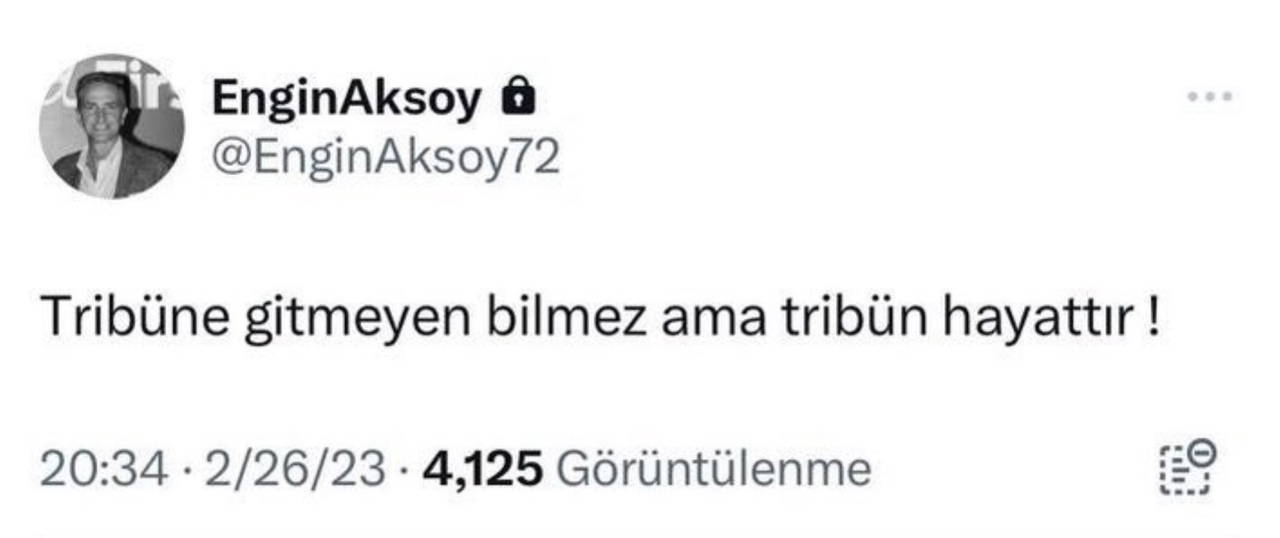 Engin Aksoy, hesabından “Tribüne gitmeyen bilmez ama tribün hayattır!” diye yazdı.