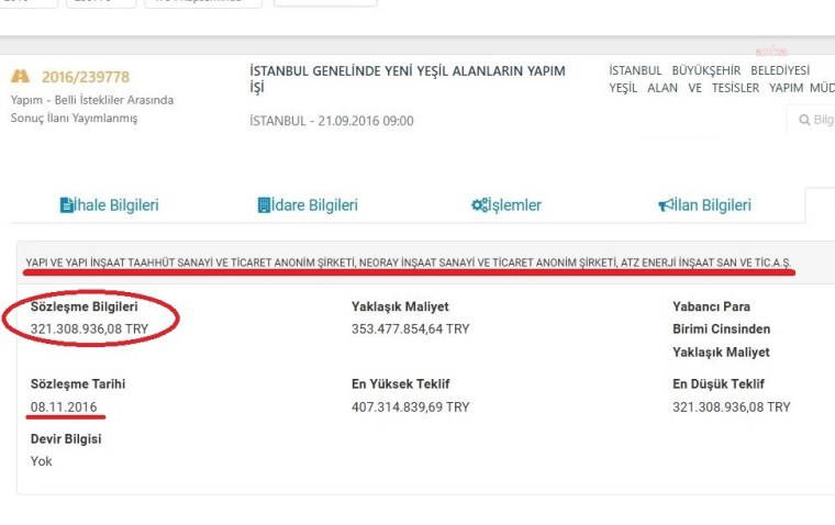 İmamoğlu’nun İBB Başkanı seçilmesinden sonra Teftiş Kurulu’na incelettiği işlemlerden bir tanesi, İBB Yeşil Alan ve Tesisler Yapım Müdürlüğü'nün 21 Eylül 2016 tarihinde yaptığı “İstanbul Genelinde Yeni Yeşil Alanların Yapım İşi” ihalesiydi.