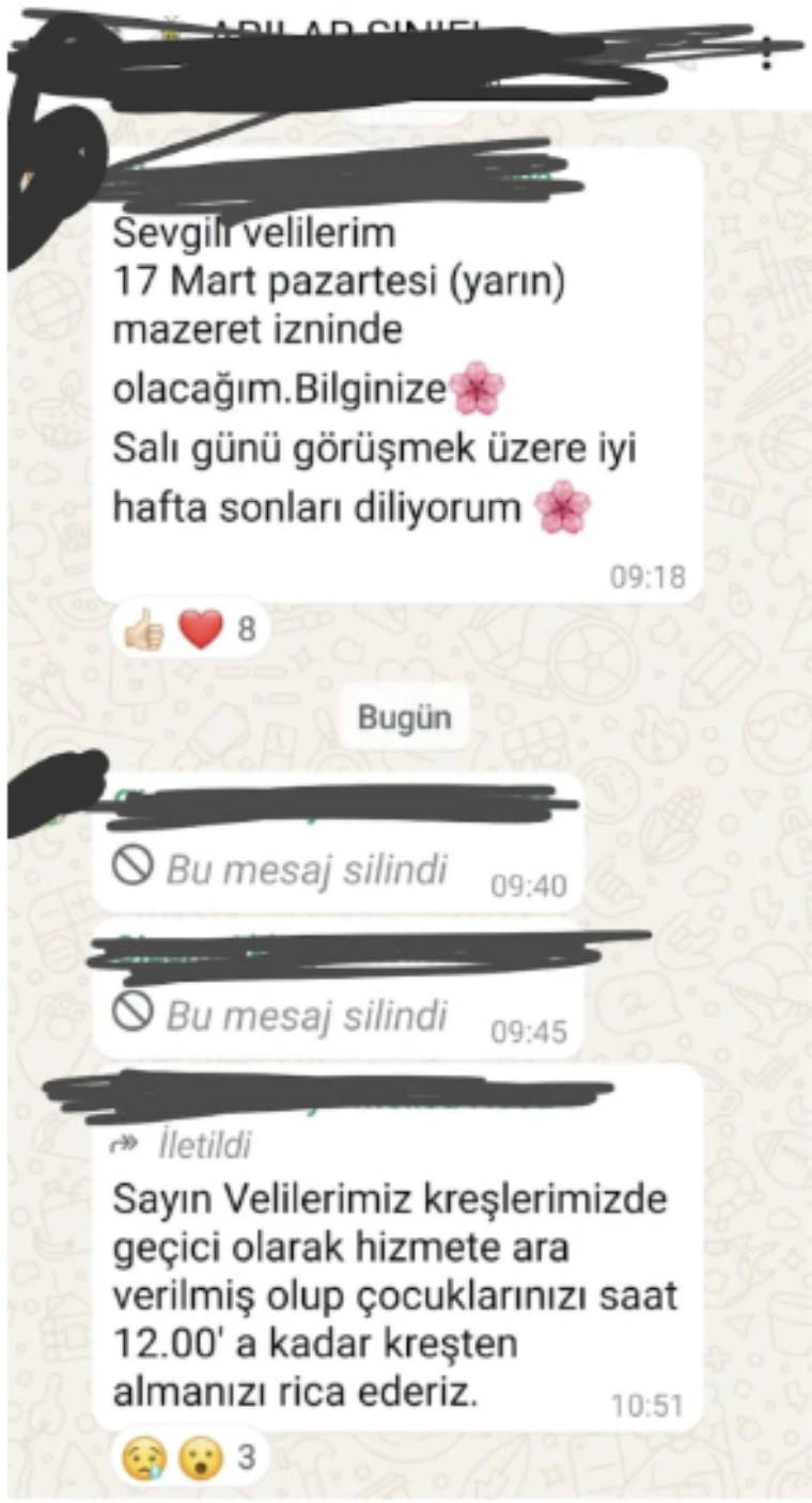 Söz konusu duruma ilişkin, belediyelerin kreşlerine yönelik bir iddia dile getirildi. Buna göre, gazeteci Canan Kaya, bir izleyicisinin gönderdiği mesajları paylaşarak Şişli Belediyesi’ne bağlı kreşlerde eğitimin durdurulduğunu açıkladı.