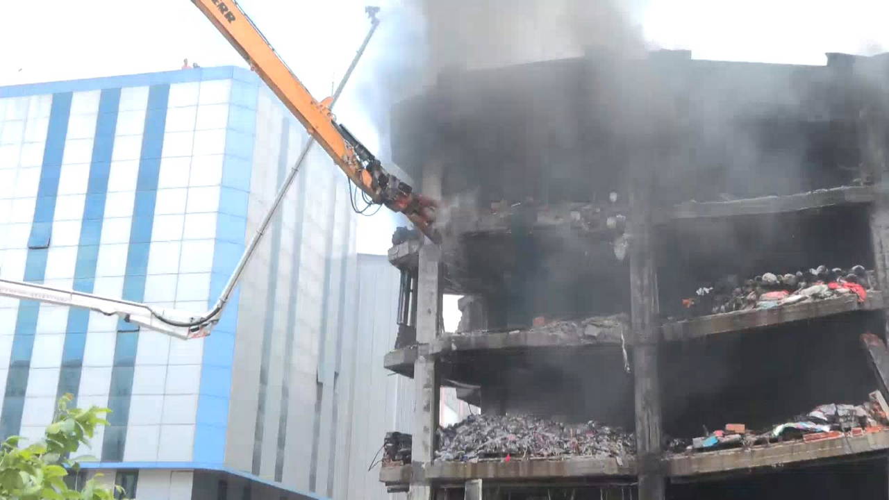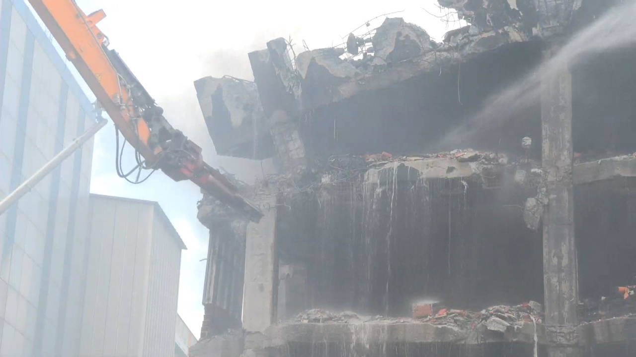 Üst katlardan kolon kesen ekipler, binanın üçüncü, dördüncü, beşinci ve altıncı katların bir kısmını yıktı. Ekipler, yıkım çalışmalarını sürdürürken itfaiyenin yangına müdahalesi devam ediyor.