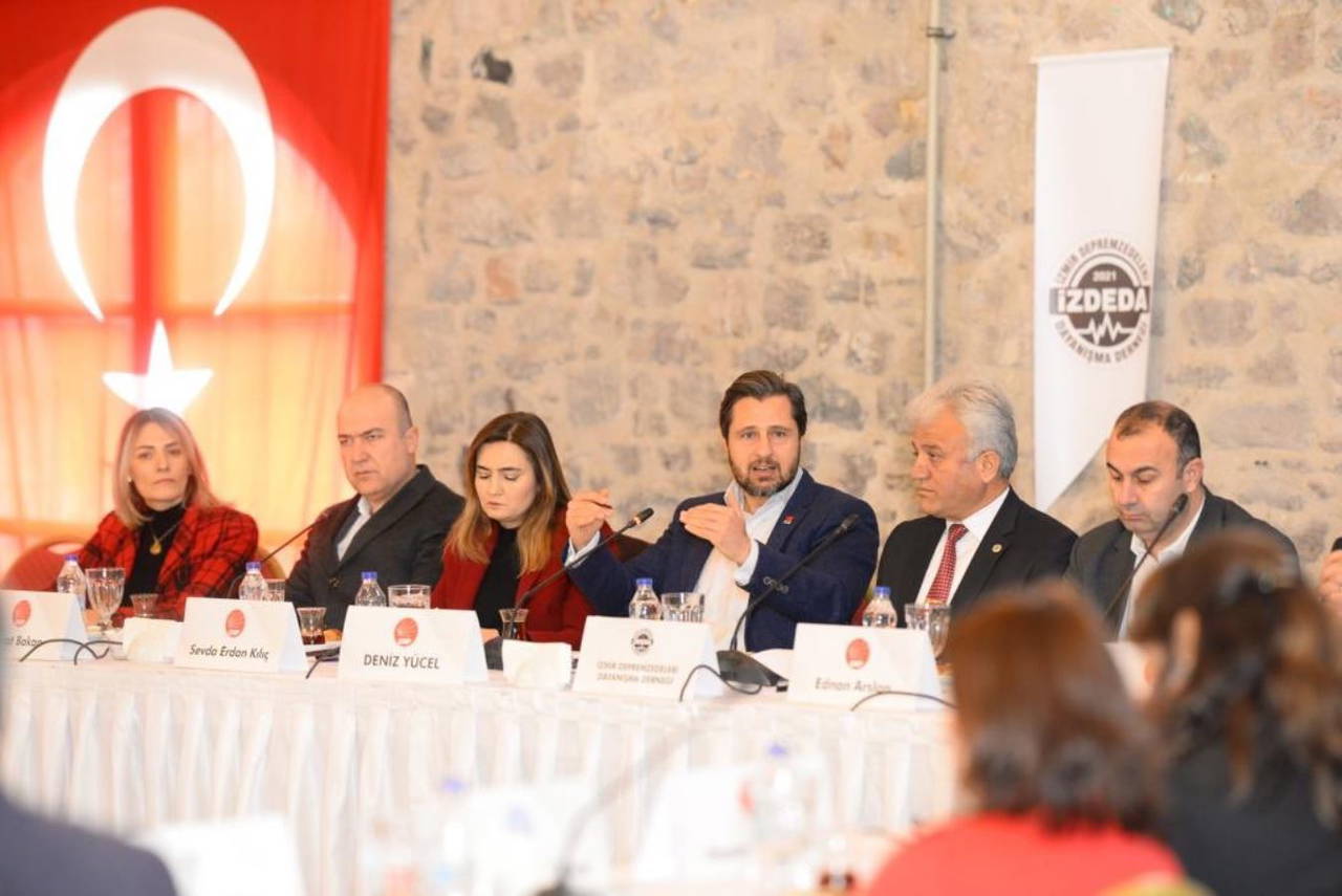 Sorunları 17 aydır süren İzmirli depremzedeler, çözüm için siyasi partilerin kapısını çaldı. İzmir Depremzedeleri Derneği (İZDEDA) söz konusu partilerin 28 milletvekilini tek tek aradı. Partilerin il başkanlarının aynı masada toplanıp çözüm üretmesi için çağrı yaptı. Ancak, İZDEDA’nın, Tarihi Havagazı Fabrikası’nda düzenlediği toplantıya, sadece CHP milletvekilleri Ednan Arslan, Kamil Okyay Sındır, Bedri Serter, Murat Bakan, Sevda Erdan Kılıç ve CHP İzmir İl Başkanı Deniz Yücel katıldı. Cumhur İttifakı partileri depremzedelerin “yardım talebine” kulak vermedi.