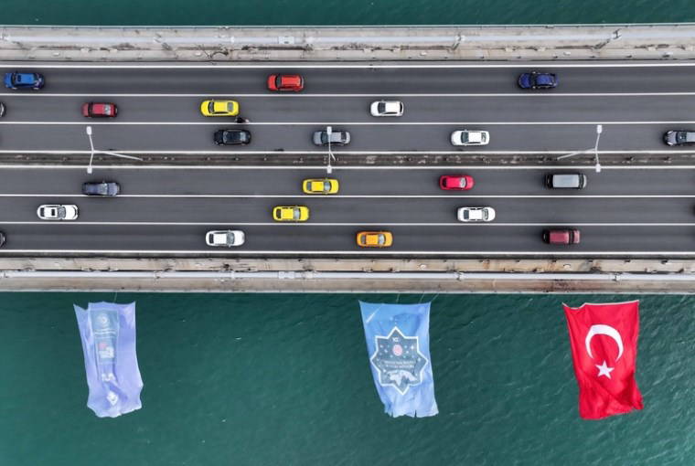 Tüm Türkiye tarihi anı konuşurken, Sanayi ve Teknoloji Bakanlığı tarafından 15 Temmuz Şehitler Köprüsü'ne Türk bayrağının yanı sıra Sanayi ve Teknoloji Bakanlığı, Türkiye Uzay Ajansı, Milli Teknoloji Hamlesi ve Gezeravcı'nın misyonda kullandığı görev armasının flamaları asıldı.