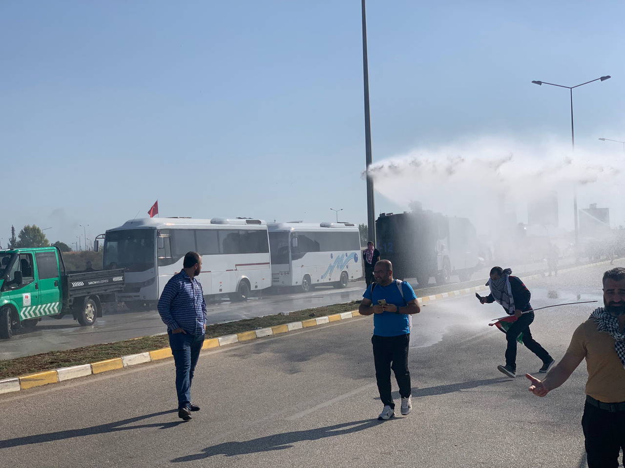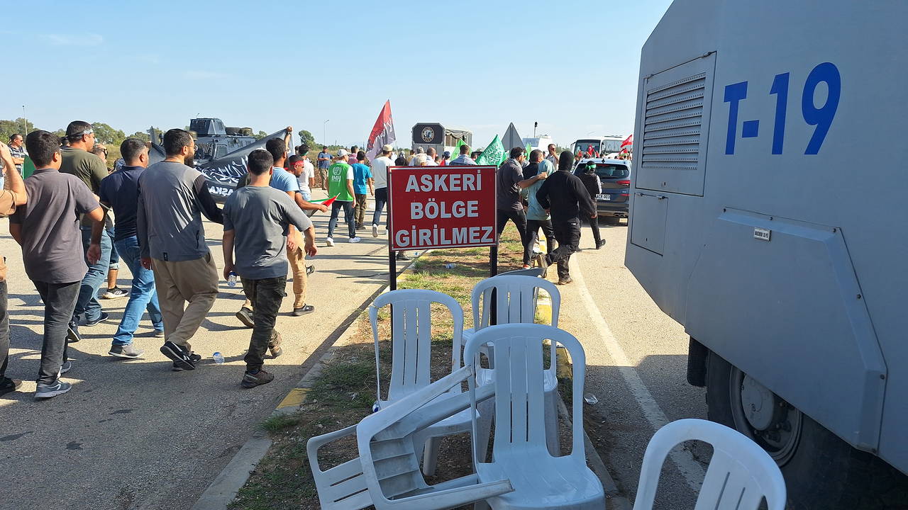 Konvoyun üs çevresine yaklaştığı saat 14.00 sıralarında gruptan bazıları tarlalar üzerinden üsse girmeye çalıştı. Atlı polisler ve çevik kuvvet ekipleri, grubu dağıtmak için biber gazı ve TOMA'larla müdahale etti.