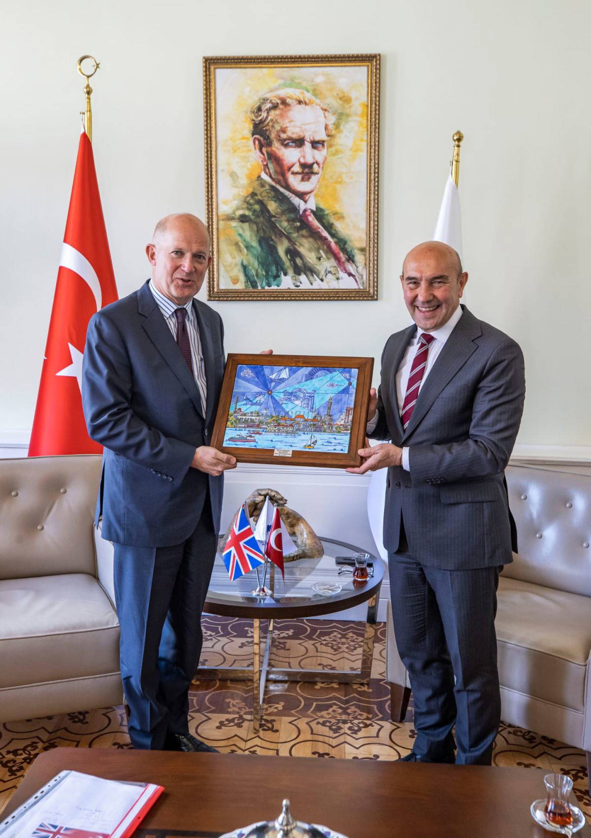 İzmir Büyükşehir Belediye Başkanı Tunç Soyer, İngiltere Büyükelçisi Dominick Chilcott’u makamında ağırladı. Ziyarette İzmir ile İngiltere arasındaki ilişkilerin sadece turizm odaklı olmaması gerektiğini söyleyen Başkan Tunç Soyer, “İzmir, birlikte yaşamanın önemini kavramış bir şehir. Oldukça demokratik, dayanışma ruhu olan bir şehir. Bütün olarak hareket edebilen bir şehir. İngiltere ile kardeş kentimiz olmasını isteriz” dedi.