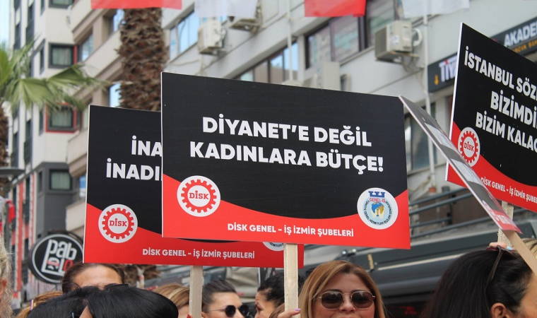 DİSK Genel İş Sendikası İzmir Kadın Komisyonları, 8 Mart Dünya Emekçi Kadınlar Günü nedeniyle İzmir Alsancak Kıbrıs Şehitleri Caddesi boyunca yürüyüş düzenledi. DİSK İzmir 7 No’lu Şube Başkanı Özgür Genç, “Bu anlamlı gün, kadınların çalışma koşullarını iyileştirmek ve eşitlik mücadelesini ilerletmek için verdikleri cesur savaşın simgesidir. Hala işten çıkarmalarda ilk başlanan kadınlarsa, hala cinsiyete dayalı ücret farklarını konuşuyorsak, hala kadınların mal varlığı, miras hakkı gasp ediliyorsa, eşitlik hakkı için daha yürünecek çok yolumuz, kazanacak mücadelemiz var” dedi.
