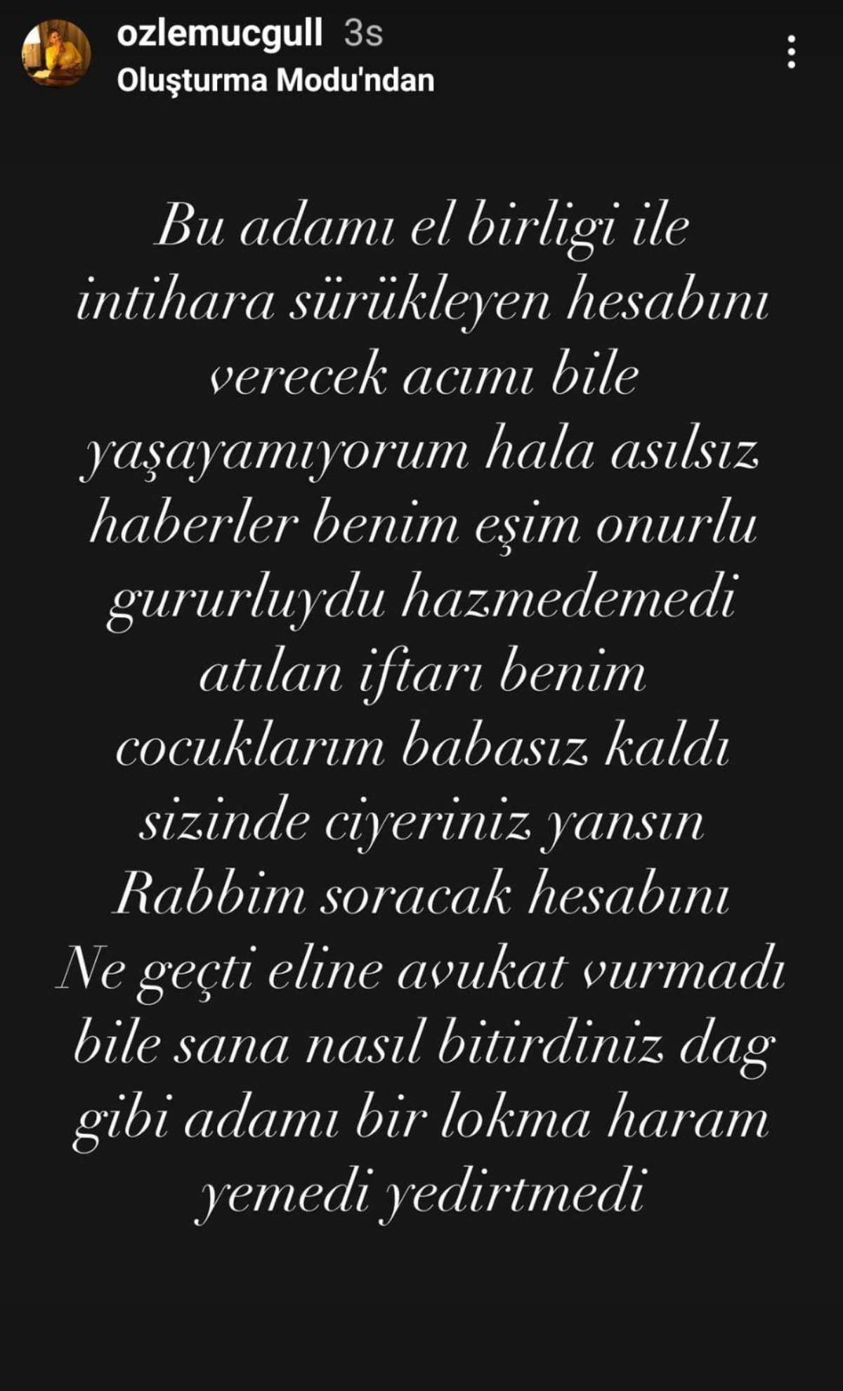 Üçgül eşi Özlem Üçgül, eşinin intiharının ardından sosyal medya hesabından bir açıklama yaptı.
