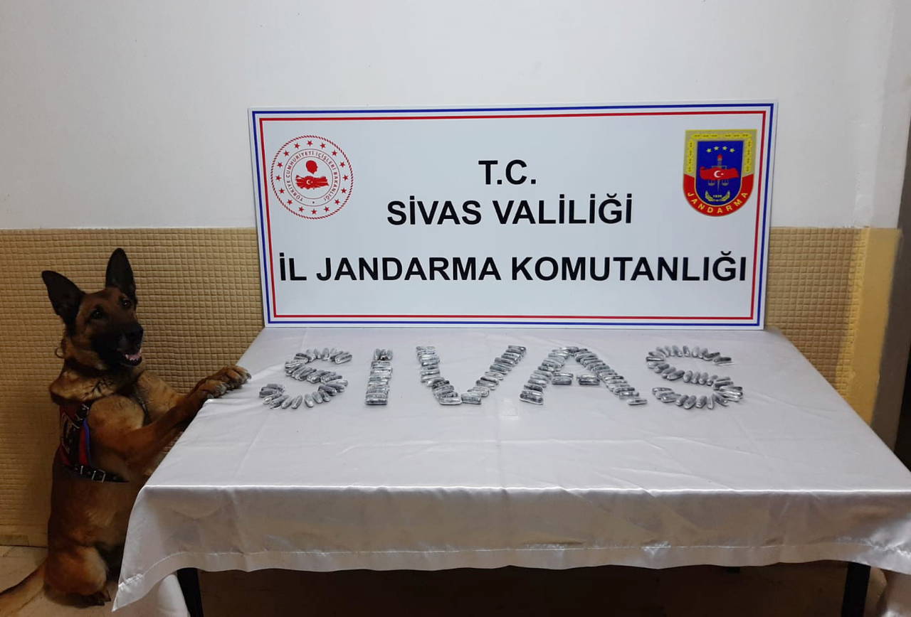 Sivas İl Jandarma Komutanlığı ekipleri, Yıldızeli ilçesinde D-200 kara yolu üzerinde yaptıkları kontrollerde İran plakalı bir yolcu otobüsünü durdurarak, özel eğitimli köpek 'Lasy' ile arama yaptı. Aramada yolculardan İran uyruklu A.E.'nin (34) üzerinde 140 paket reçine esrar ile 6 uyuşturucu hap bulundu.