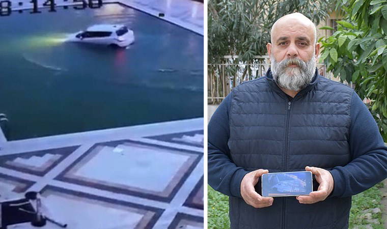 Demir, kendi imkanlarıyla otomobilin kapısını açıp, yüzerek kurtuldu. O anlar, güvenlik kamerasına yansıdı.