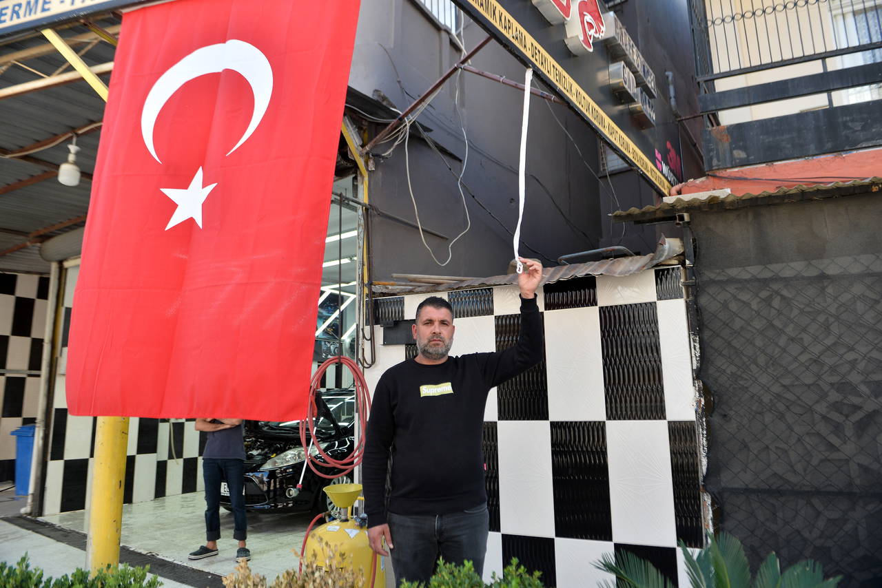 Seyhan ilçesi Gürselpaşa Mahallesi’nde, dün saat 04.00 sıralarında bir oto yıkama dükkanının önünde otomobilinden inen şüpheli, iş yerine asılı Türk bayrağını çekerek bulunduğu yerden kopardı.