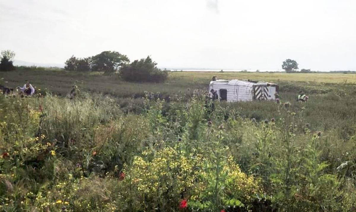 Bursa Karacabey ilçesi yönüne giden ve işçi servisi olarak hizmet veren minibüsün lastiği, Bursa-Balıkesir karayolunun Çingençeşme mevkiinde patladı. Kontrolden çıkan minibüs, takla atarak yol kenarındaki buğday tarlasına devrildi.
