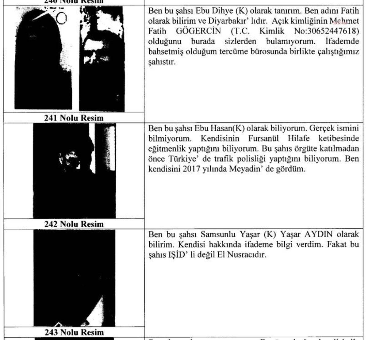 Yetek’in, "Fatih Kağan Çiftçi" adlı IŞİD üyesi hakkında verdiği bilgi ise emniyet tutanağına şöyle yansıdı: