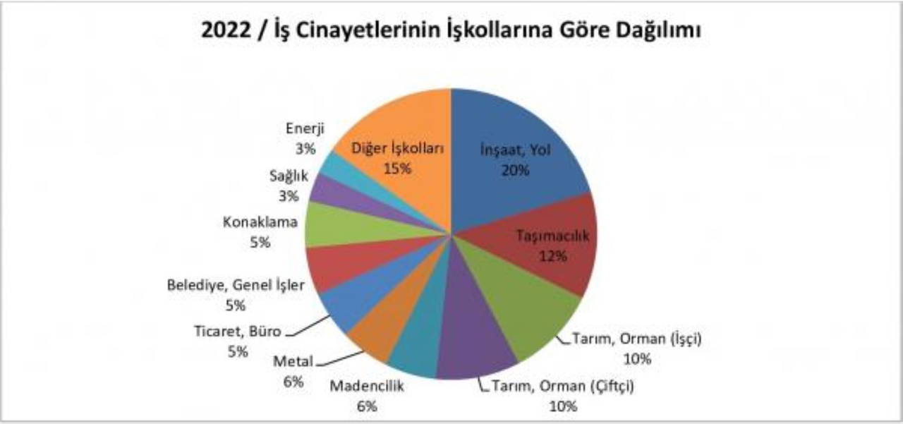 İş cinayetlerinin yoğunlaştığı (953 işçi ölümü) üç işkolu bulunuyor. Güvencesiz çalışmanın hakim olduğu inşaat, tarım ve taşımacılık. Uzun çalışma saatleri, yoğun çalışma, sigortasız çalışma ve her türlü kuralsızlığın hakim olduğu bu işkollarında sendikal örgütlenme yok gibi ya da zayıf ve belli mesleklerde öbekleniyor.