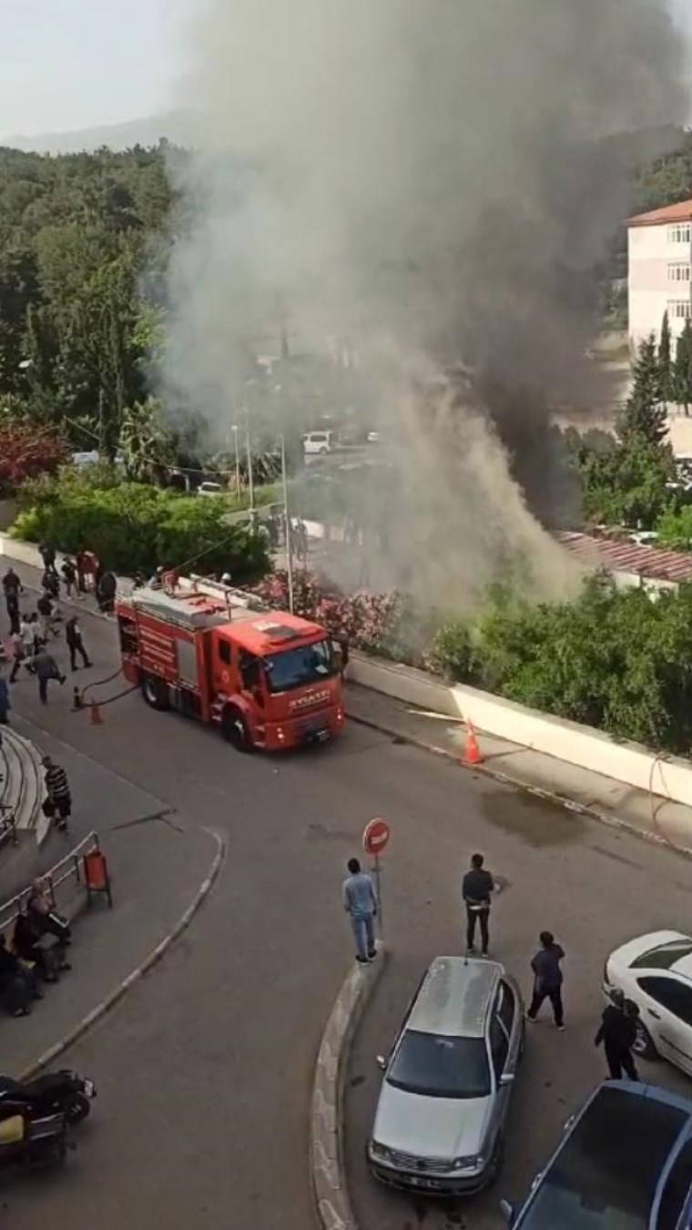 İskenderun Devlet Hastanesi’nin B Bloku'nda poliklinik olarak kullanılan 3 konteynerde sabah saatlerinde yangın çıktı.