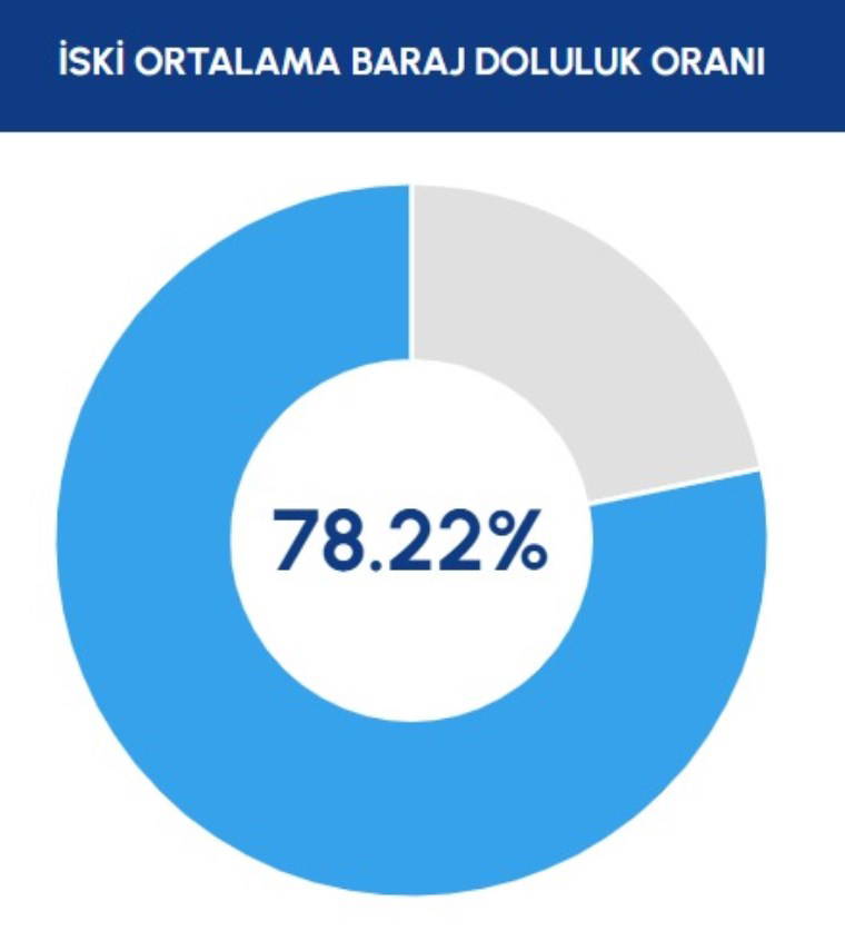 İstanbul Su ve Kanalizasyon İdaresi’nin (İSKİ) verilerine göre, megakentte barajların ortalama doluluk oranı 11 Mart'ta 78.14 iken bugünkü verilere göre yüzde 78.22 oldu.