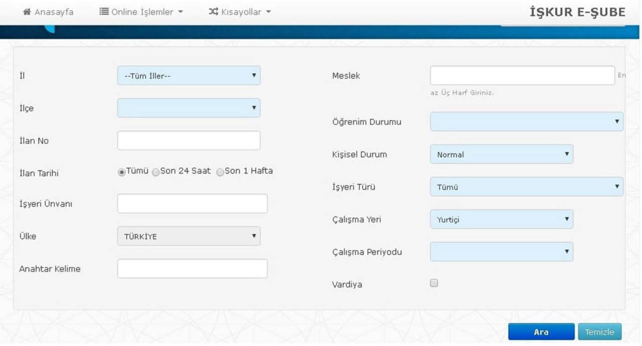 * Bu sayfa üzerinden Türkiye ve yurt dışındaki tüm sektörlerden, tüm iş ilanları görülebilir. Bu aramayı sınırlamak için ülke, il, ilçe, sektör, ilan tarihi, meslek, eğitim bilgileri gibi tüm detayları girerek, aramayı filtrelemek gerekiyor.