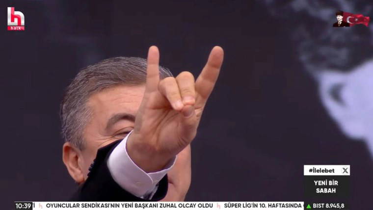 İsmail Küçükkaya, bugün Halk TV’deki “Yeni Bir Sabah” programında MHP ile özdeşleşen bozkurt işaretini yaptı.