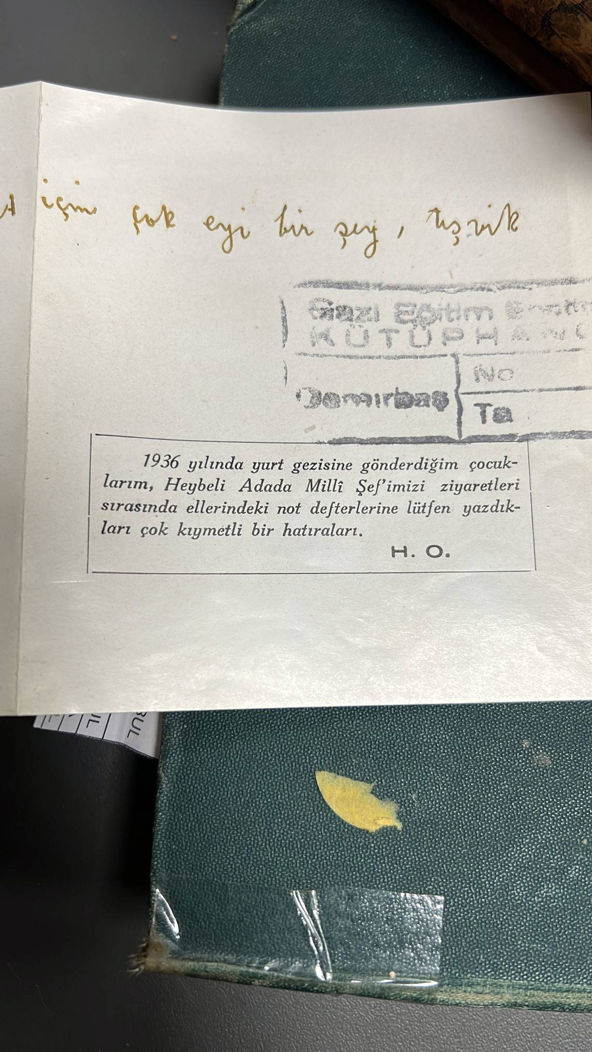 İsmet İnönü'nün, yurt gezisi sırasında Heybeliada'da kendisini ziyaret eden yazar Hüseyin Orak'ın, çocuklarına yazdığı, "Küçük seyyahları tebrik ettim. Seyahat sevmek bir memleket için çok eyi bir şeyi teşvik alınacak bir arzudur" notu, 86 yıl sonra ortaya çıktı. İnönü'nün notu, yazar Hüseyin Orak'ın 'Türkiye Kılavuzu' isimli gezi rehberi kitabının arasında bulundu. Notun kenarında ise yazarın, "1936 yılında yurt gezisine gönderdiğim çocuklarım Heybeliada'da Milli Şefi'mizi ziyaretleri sırasında ellerindeki not defterlerine lütfen yazdıkları çok kıymetli bir hatıraları" ifadesinin olduğu görüldü.