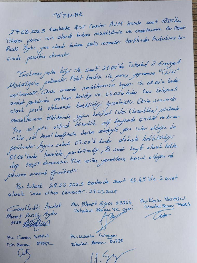 Mağdurların maruz kaldığı tüm bu keyfi işlemler, kötü muamele ve işkence uygulamaları İstanbul Barosu olarak tarafımızca kayıt altına alınmakta olup, yaşanılan bu hukuksuz süreci yakından takip ediyor ve sorumlular hakkında yasal işlemlerde bulunacağımızı beyan ediyoruz."