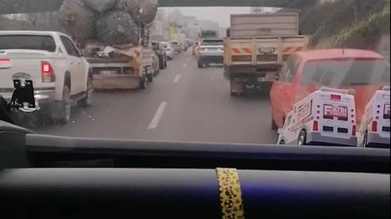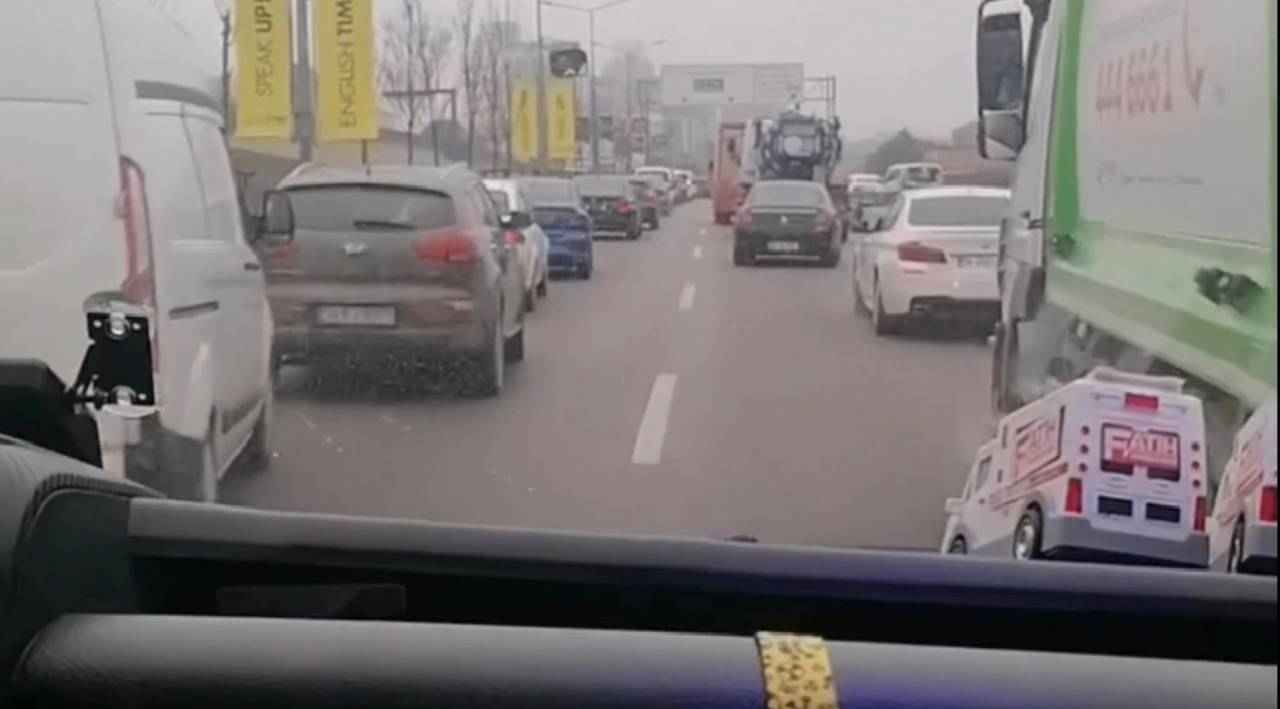 İstanbul Beykoz'da önceki gün öğle saatlerinde trafikteki araç sürücüleri, ambulansa fermuar sistemiyle yol verdi.