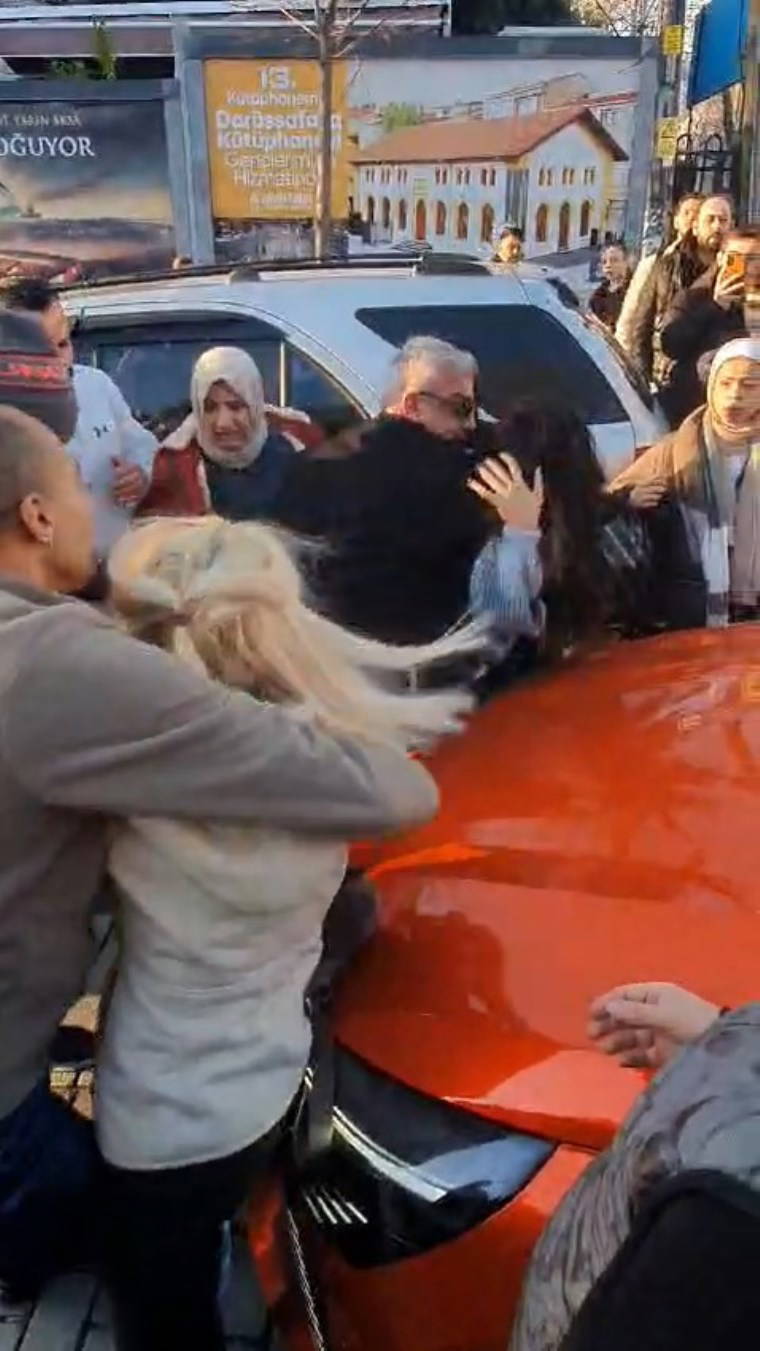 Diğer aracın sürücüsü ise kadını ezmeye çalıştı. Çevrede bulunan vatandaşlar kadınları ayırmakta güçlük çekti.