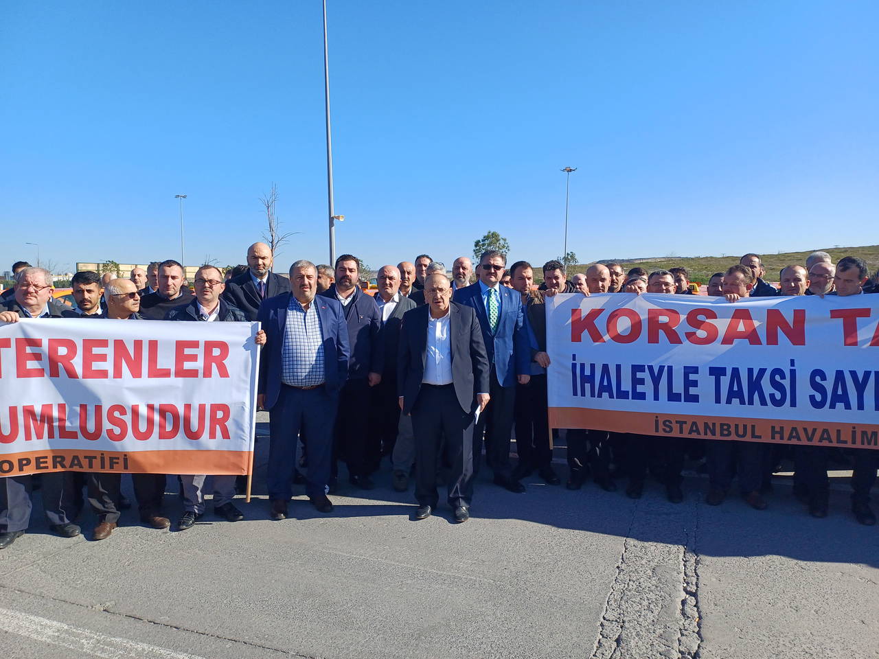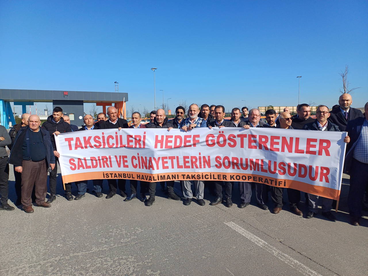İstanbul Havalimanı Taksiciler Kooperatifi üyeleri İzmir'de taksici Oğuz Erge'nin öldürülmesi ve taksicilere yönelik saldırılara tepki göstermek için bir araya geldi.