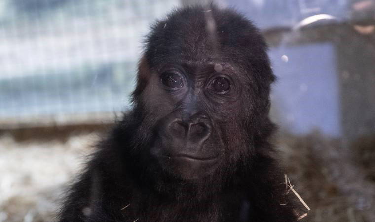 Nesli tükenmek üzere olan "gorilla gorilla" cinsi yavru hayvanat bahçesindeki cam odada gözetim altında tutuluyor.